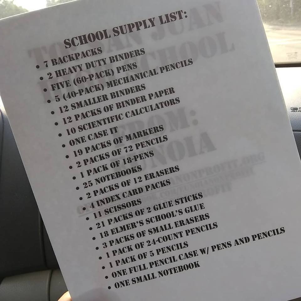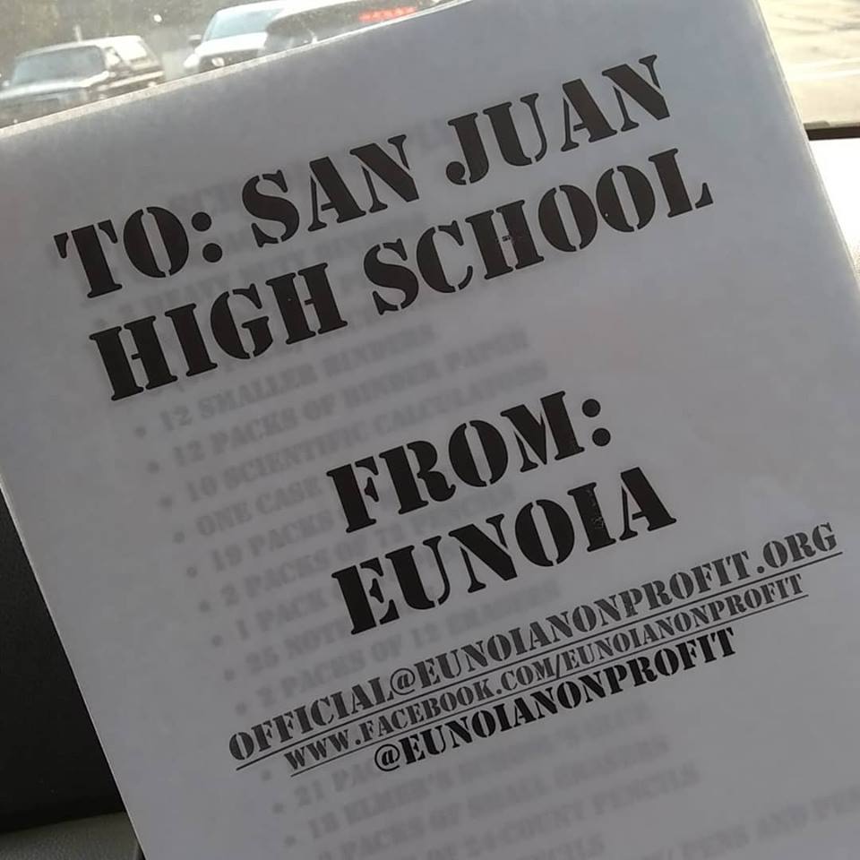 - San Juan High School: Over $800 worth of school supplies were donated to San Juan HS!
