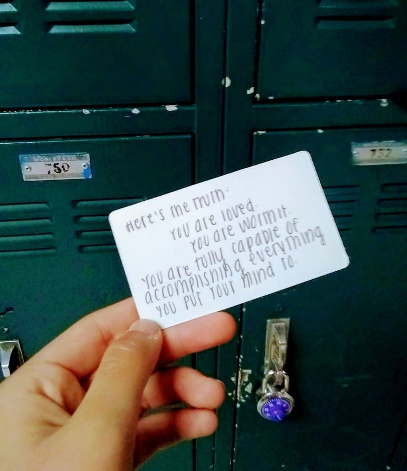 - We also placed index-card sized encouraging messages in the lockers of students at Churchill and San Juan.