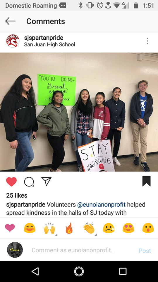- Teens helped spread messages of positivity and inspiration to other teens in the local Sacramento community. This was done in the form of social media and direct distribution of handwritten notes.